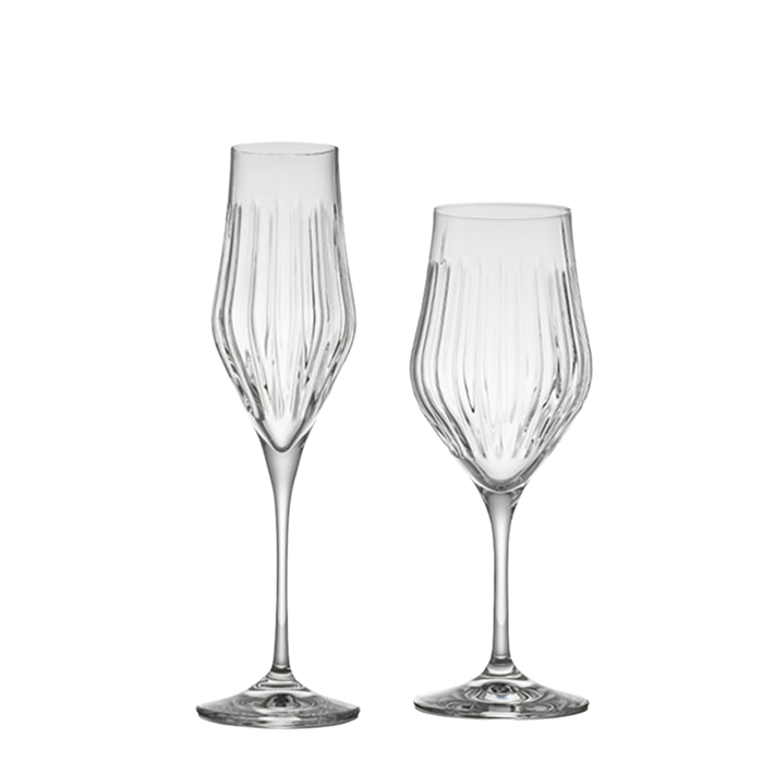 Newest addition to the Timeless Glassware Collection, with a graceful shape and signature hand-cut detailing, they bring a refined elegance to every pour—perfect for everyday luxury or special occasions.